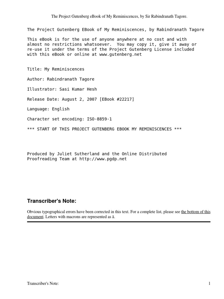 My Reminiscences By Tagore Rabindranath 1861 1941 Pdf Translations Paintings